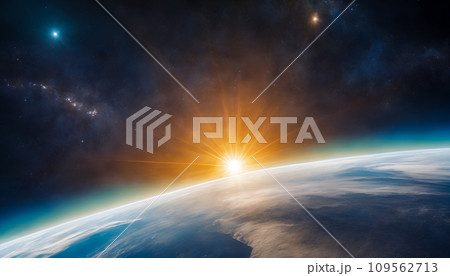 宇宙から見た地球と太陽 AI生成画像