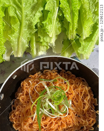 Rabokki, Korean style Stir-fried Instant Noodle : This dish is tteokbokki with ramen noodles. Tteokbokki is a spicy dish made with rice cake, vegetables, and fish cake,