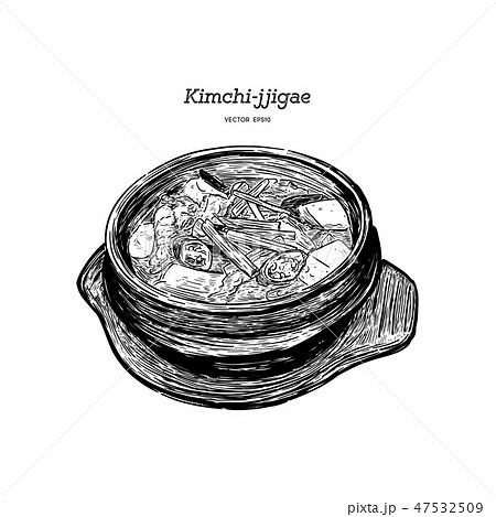 Korean food (Kimchi Jjigae), Kimchi soup with tofu, pork, scallion and chili in Korean stone bowl