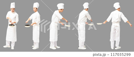 レストランコック、シェフの調理男性の全身人物切り抜き素材