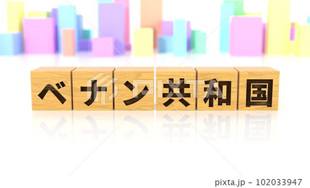 ベナン共和国という国名が印字された木製ブロック