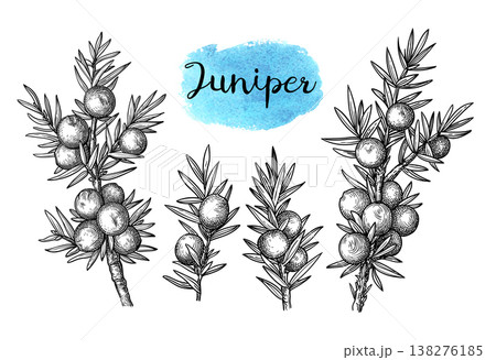 Juniper sprigs set. Botanical illustration.