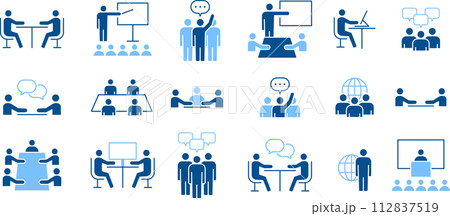 青2色のビジネスに関するシルエットピクトグラムのセット
