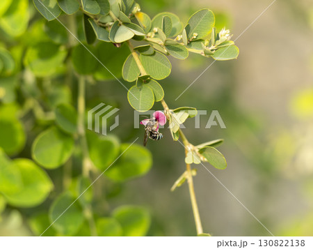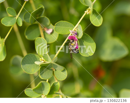 花に止まるアオスジハナバチ