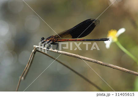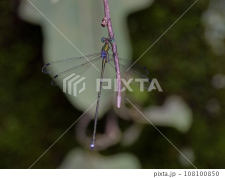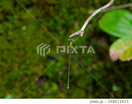 羽を休めるアオイトトンボ科コバネアオイトトンボ♂
