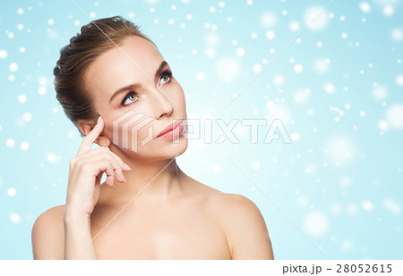 beautiful young woman touching her face over snow