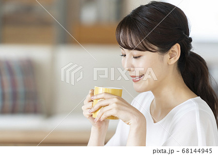 マグカップを持つ若い女性
