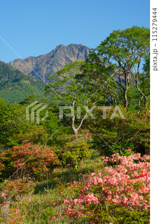 (山梨県)レンゲツツジと新緑が美しい、清里の美し森から望む八ヶ岳連峰
