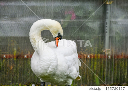 手賀沼の水辺にたたずむ白鳥