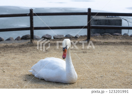 晴天の牛久沼水辺公園のコブハクチョウ 茨城