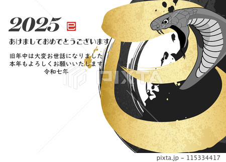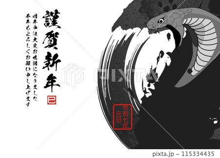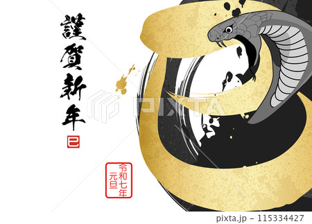 年賀状 年賀2025 巳年 巳 蛇 へび年 墨絵 水墨画 版画 水彩 手描き イラスト素材