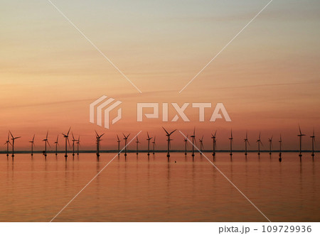 静寂なバルト海に佇む風車塔の群れ