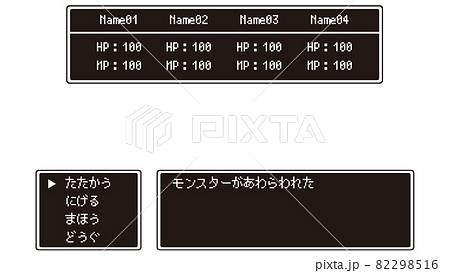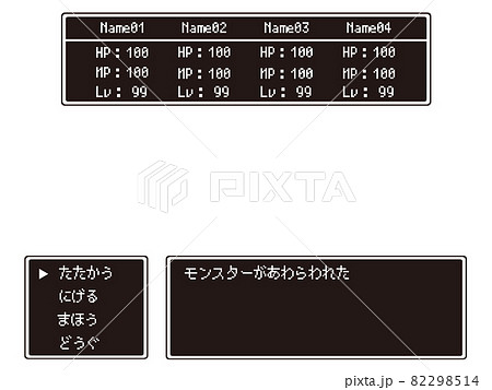 レトロ風 RPGの戦闘コマンド画面 ベクターイラスト