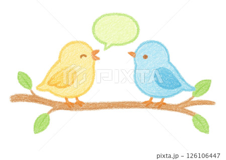 クレヨン風 小鳥たちのおしゃべりイラスト