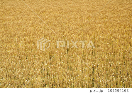 収穫時期の麦畑 小麦の穂 (6月) 小麦
