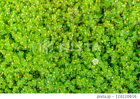 春の日本の野原に咲く黄色いコメツブツメクサの花