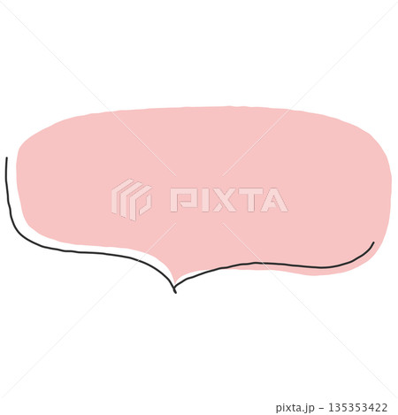 手書きのシンプルな下向きの横長線の吹き出し(ピンク、赤)