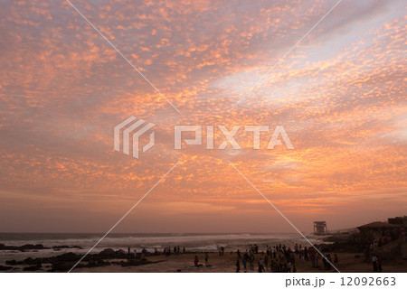 インド コモリン岬の夕焼け カニャークマリ うろこ雲