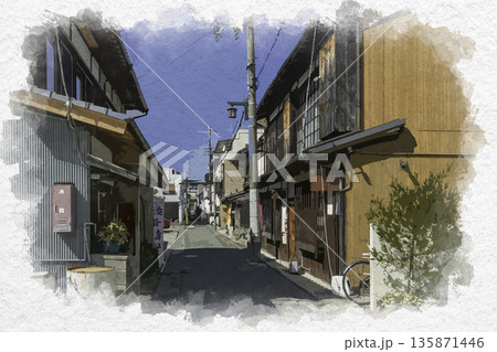 水彩画風 洲本の町並み レトロこみち 兵庫県洲本市