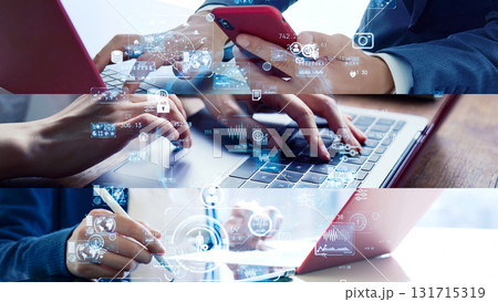 様々なテクノロジーイメージのコラージュ バナー・広告向け横長ビジュアル