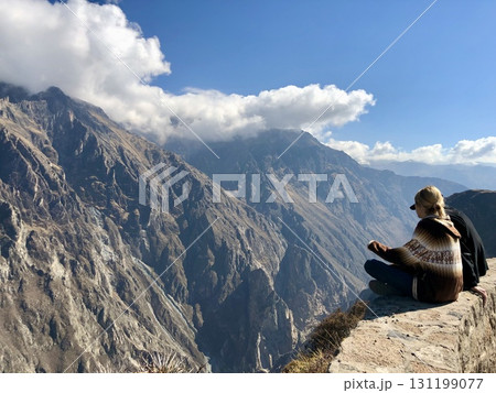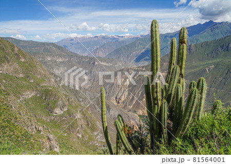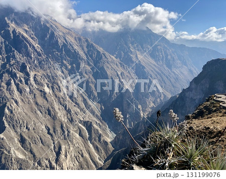 ペルーのコルカ峡谷(Colca Canyon)の断崖と山々(縦)