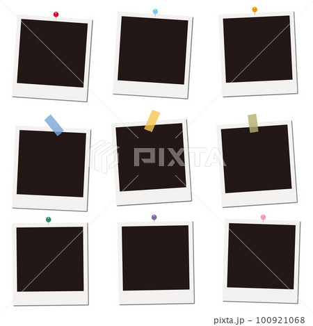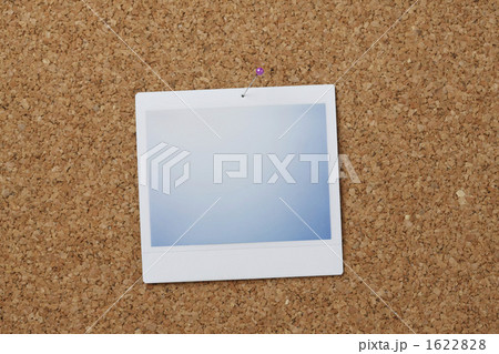 コルクボードにピン留めされて並べた写真 メモ フレーム