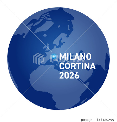 ミラノ・コルティナの位置をしめす地球儀の世界地図