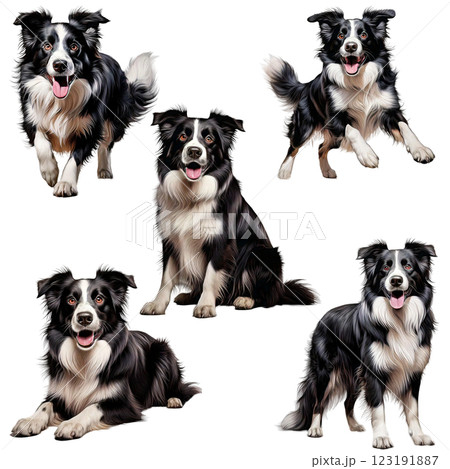 ボーダーコリーブラックホワイトリアルイラストセット