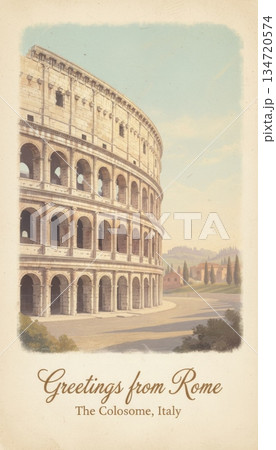古代ローマ遺跡、円形闘技場コロッセオの外観 旅行、観光、各種広告関連の幅広い商用デザイン素材