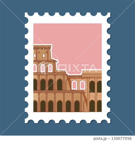 Colosseum Vector Illustration on Postage Stamp