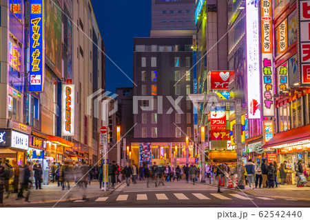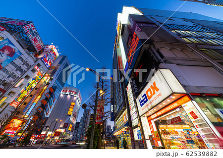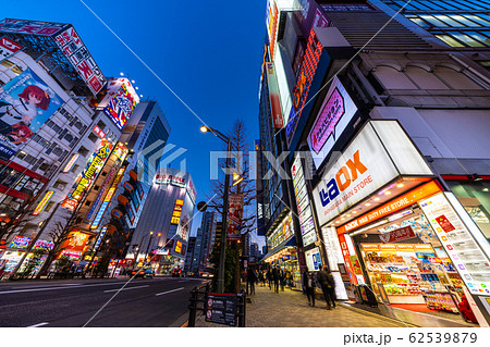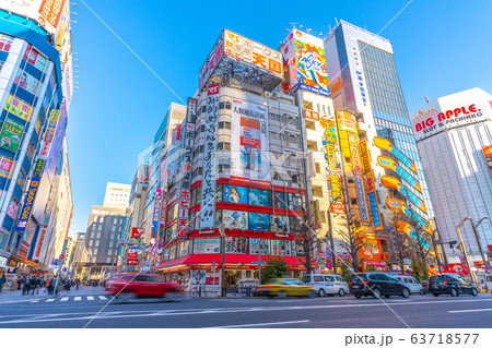 日本の東京都市景観 新型コロナウイルス・中国からの団体観光客の姿が消えた秋葉原駅前=17日