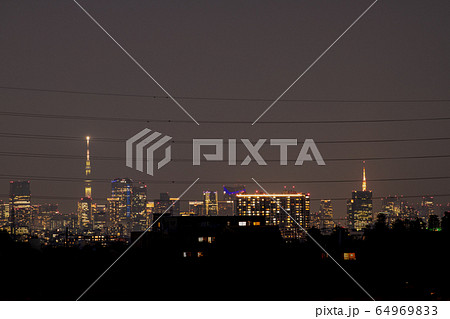 日本の東京都市景観 新型肺炎“都市封鎖”。“柵”(高圧電線)の奥に東京都心=21日、宣言から2週間