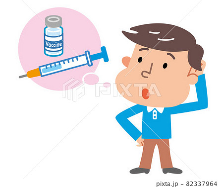 ワクチン注射を受けようか考えている若い男性のイラスト