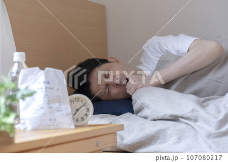 体調不良の男性 頭痛 倦怠感 睡眠不足