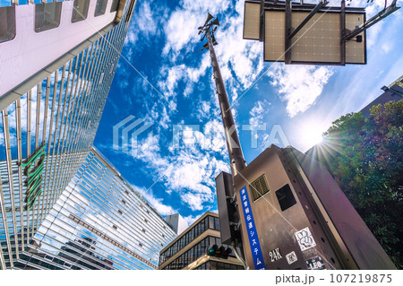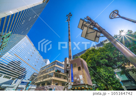 日本の横浜都市景観 防災都市ヨコハマ…SOTETSU 横浜駅前の津波警報伝達システムなどを望む
