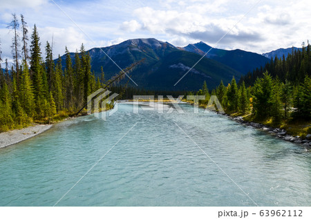 秋のカナディアンロッキー クートニー川に掛かる橋(クートニー国立公園 カナダ BC州)