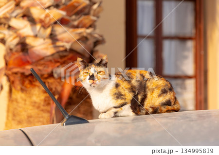 Calico Cat on Car in Chania, Greece