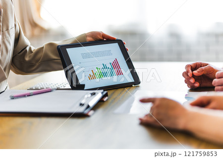 グラフで説明する女性