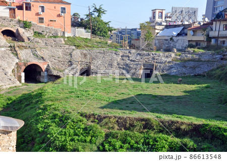 アルバニア ドゥラス 東ローマ帝国時代の遺構 円形闘技場劇場跡