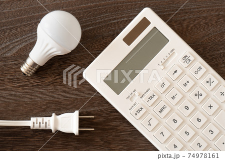 電気料金のイメージ(電球・電卓・電源プラグ)