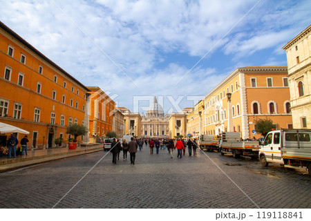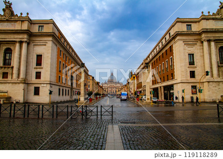 イタリア共和国ローマにある世界最小国家バチカン市国 世界遺産サンピエトロ大聖堂正面の通りからの景色