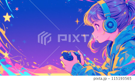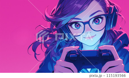 eスポーツ、テレビゲームをしている若い女性のイラスト「AI生成画像」
