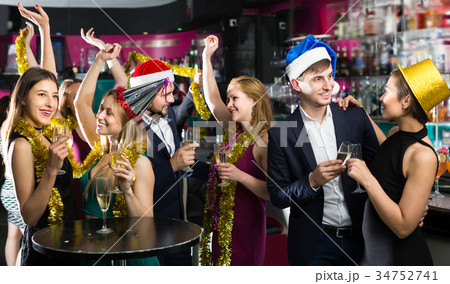 x-mas, new year party concept photo. holding balloons, happy friends having fun together. 010