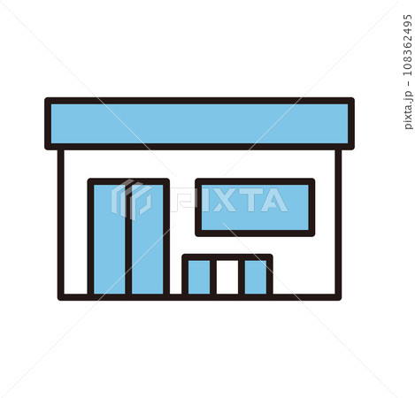 24時間営業のコンビニエンスストアの外観アイコン・シンプルなコンビニの店舗建物