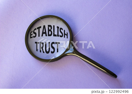 Establish trust symbol. Magnifying Glass with Concept word Establish trust. Beautiful purple background. Business and Establish trust concept. Copy space