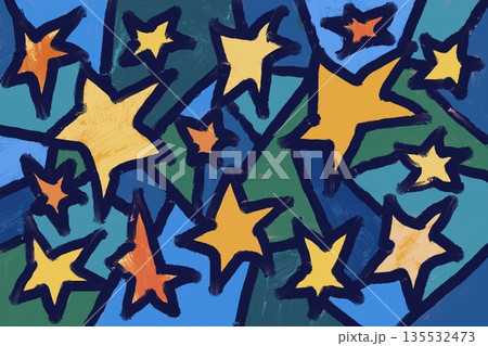 油絵風抽象背景バナー。躍動的でカラフルな輪郭付星柄。人気や評価のコンセプト