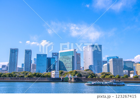 日本の東京都市景観 冬晴れの澄み切った青空が広がる汐留のオフィス群を望む