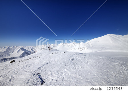 Empty ski slope at sun day