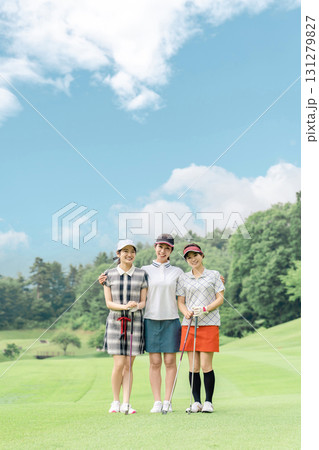 ゴルフコースにいる女性ゴルファー(コースデビュー,ゴルフ女子,ゴルフ教室)