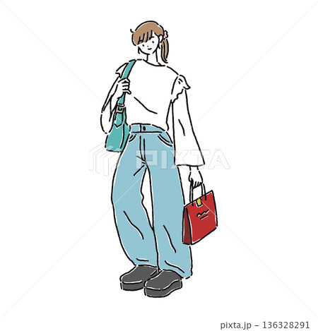 バッグを持った女の子のイラストセット